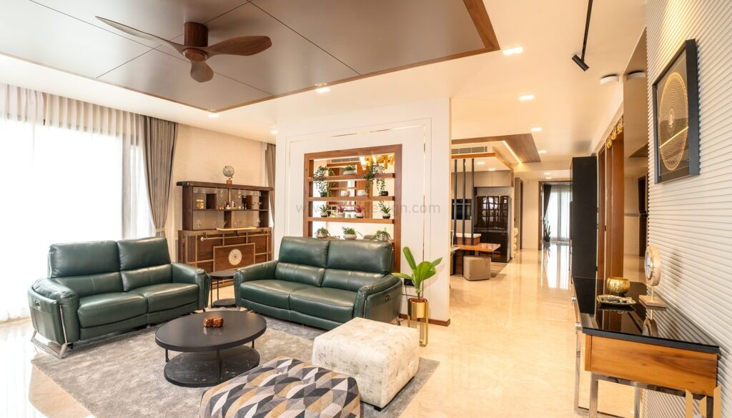 Living rooms are planned to accommodate work without looking like offices. Sliding walls and movable panels allow spaces to expand or contract when needed. Bedrooms often include discreet work or storage zones, and dining areas are designed for more than formal meals. This approach is especially relevant in urban homes where every square metre matters.